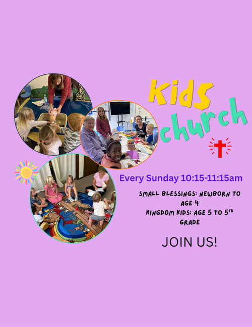 In Kids Church our hearts desire is that the children learn to love God and that God loves them. Our sessions are Bible based and follow our Methodist faith. Children begin the hour in worship, then students and teachers move to classrooms and outdoors for interactive learning.